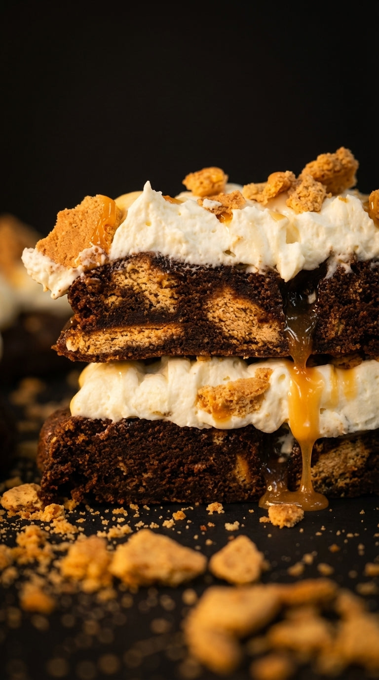 Chocolate dough with graham cracker, caramel, cheesecake frosting, and cheesecake whipped cream.