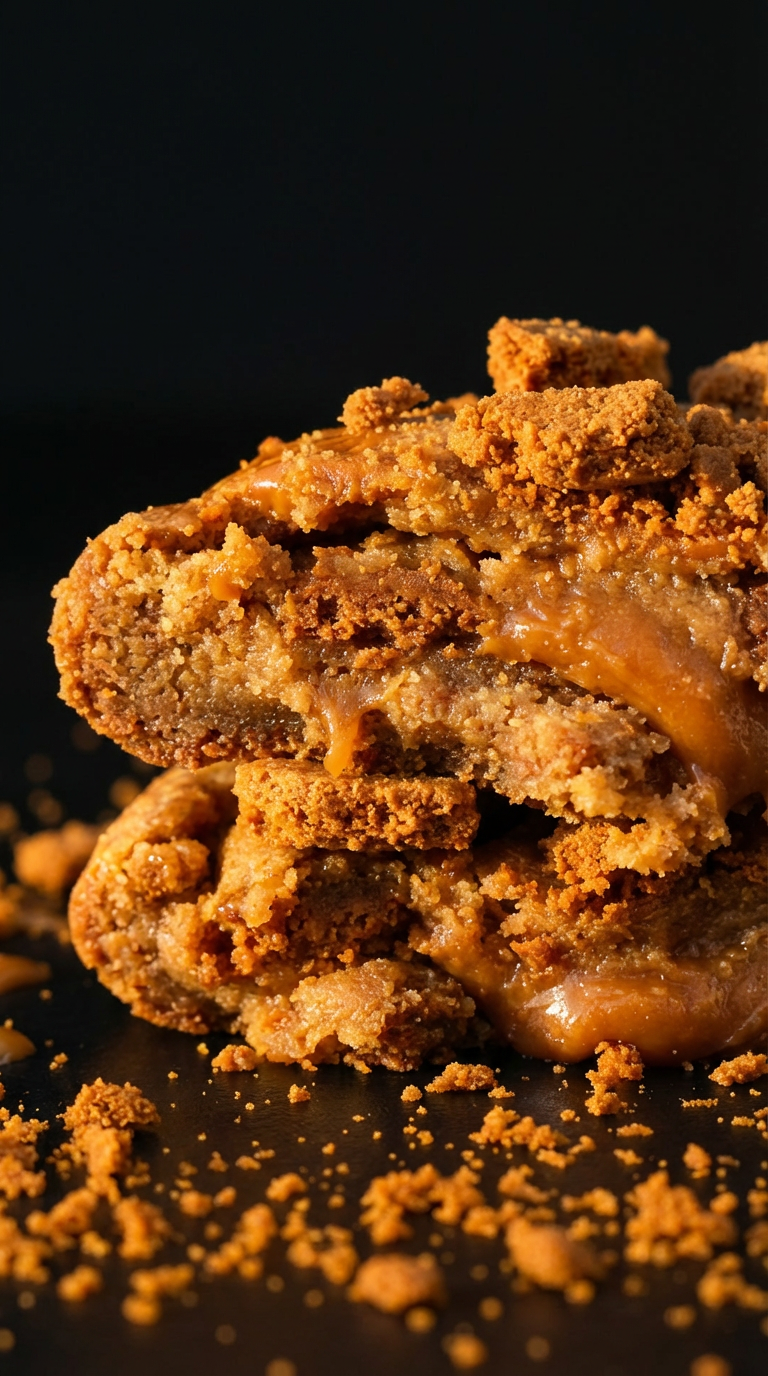 Cookie butter dough loaded with Ghirardelli caramel, crushed Biscoff cookies, and a caramel drizzle.