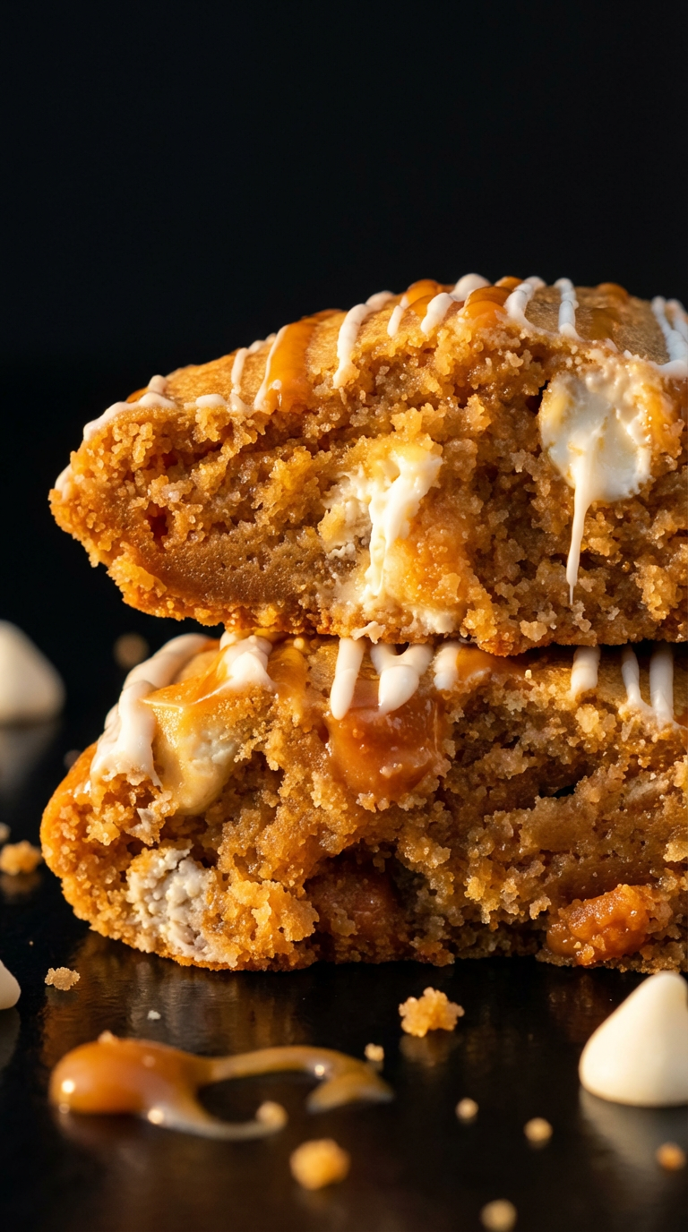 Signature dough with white chocolate chips, caramel bits, caramel drizzle, and white chocolate drizzle.