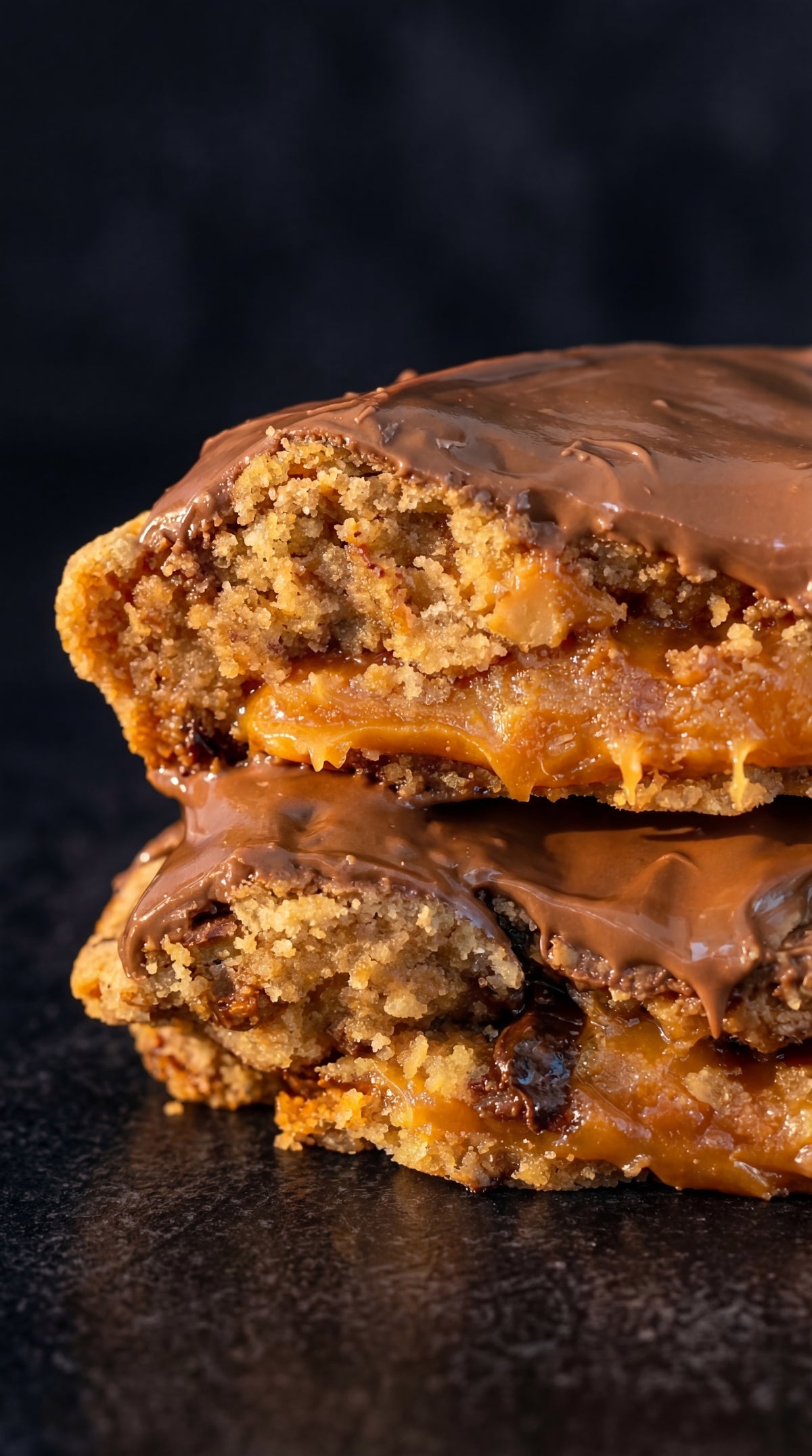 Brown sugar dough + caramel stuffed + candied pecans + milk chocolate. The one your diet warned you about.