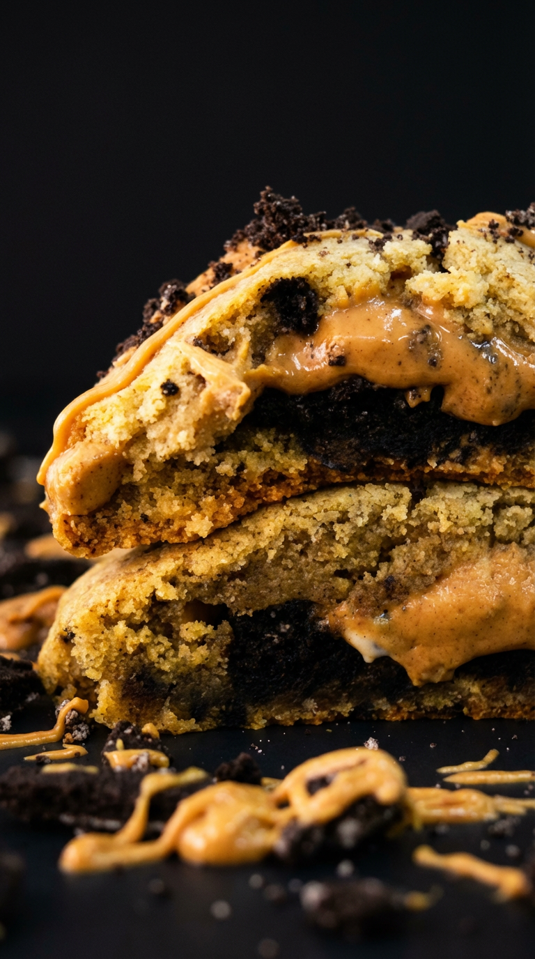 Cookies & cream dough with peanut butter, crushed Oreo, and Oreo stuffed.